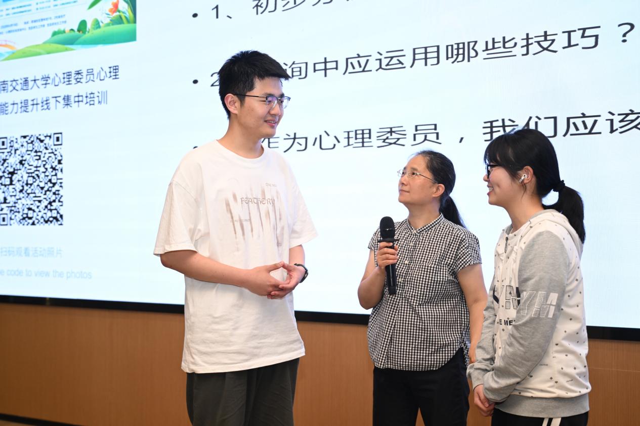 在日常心理问题的朋辈心理辅导专题中,汪小容老师和何立群老师以“理论+案例+互动”的模式,引导在座心理委员主动参与分析与讨论,通过朋辈心理案例,老师引导大家思考日常心理辅导中的常见难点的解决方法,并提出合理科学的帮助策略。同时,老师还分享了实用的沟通技巧,鼓励心理委员在日常相处中主动关心同学、贴近同学,用真诚与专业搭建起朋辈互助的桥梁。