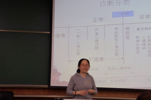 本次讲座主要包含三部分内容。首先,曾老师向同学们介绍了目前世界上大部分人都处在心理亚健康的一个实际状况,并为在场同学们精心准备了科普资料,为马克思主义学院的同学们揭开了心理学“神秘的面纱”。通过曾老师的介绍,有效的帮助同学们转变了对于心理问题和心理疾病的恐惧态度和错误认识。随后,曾老师详细地向同学们讲解了哪些情况属于心理出现了问题以及如何评估自己的心理状态,并向同学们着重指出精神疾病和心理问题的不同之处。最后,曾老师向同学们简单介绍了心理咨询的各个流派,告诉同学们当出现任何不适情绪时可以向咨询中心寻求帮助,并叮嘱在场同学如有心理疾病一定要去医院及时就医。