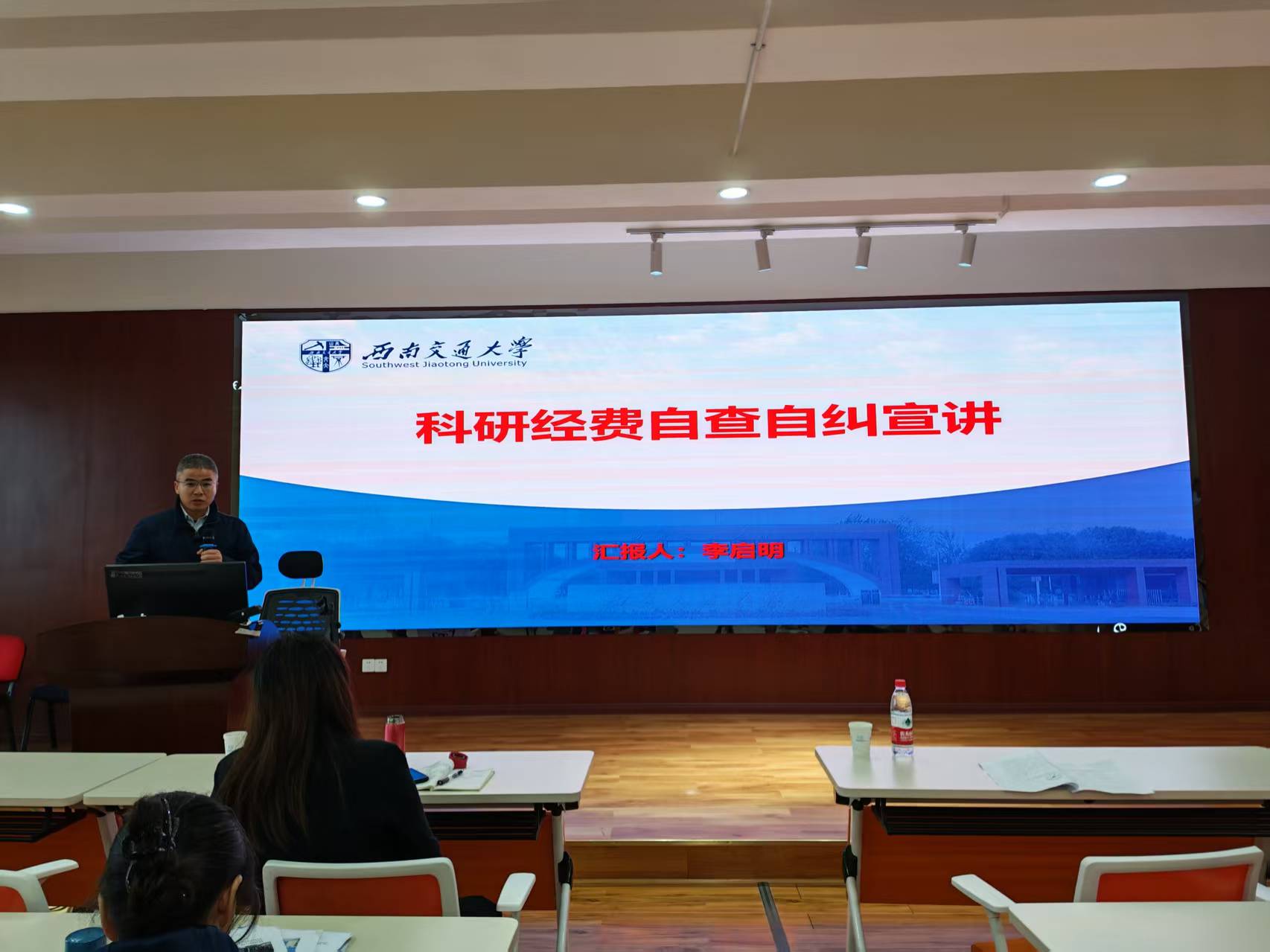 心理中心副主任李启明从科研经费管理和本研毕业论文的指导工作两个方面进行了部署宣讲。李启明通报了高校科研经费使用管理中出现的一些不规范问题,并强调科研项目负责人应严格按照学校相关要求做好此次科研经费自查自纠工作,加强科研经费管理,确保经费使用合法、合规。另在本研毕业论文指导方面,指导老师应切实履行好第一责任人的职责,重视选题把关,加强全过程指导,切实提升论文质量。