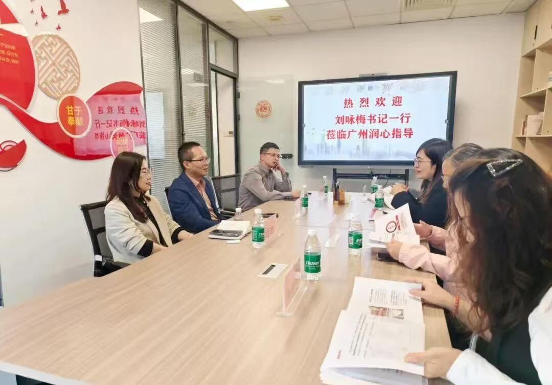随后,考察团走访了广州润心集团总部与大康心理广州培训学院。其中,广州润心集团与中心早有坚实的共建交流合作基础。此次座谈中,广州润心集团详细介绍了集团的发展历程、业务布局及行业成就,展现了广州润心集团在心理健康教育应用领域的深厚积淀与良好发展态势。双方围绕心理健康教育服务方面人才需求、职业规划、就业形势等方面进行了深入交流。双方明确将在前期合作基础上,继续推动深入交流,加强实习实践合作。