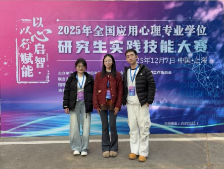 2025年12月7日,在华东师范大学举办的“2025年应用心理专业学位研究生实践技能大赛”决赛中,由西南交通大学心理研究与咨询中心硕士研究生王柯又、周燚森、张秒组成的参赛团队,凭借作品《“栖光”正念呼吸助眠夜灯》,荣获产品设计赛道二等奖。本次大赛作为全国应用心理专业学位研究生培养领域的高水平学科竞赛,吸引了来自全国多所高校的优秀学子同台竞技。