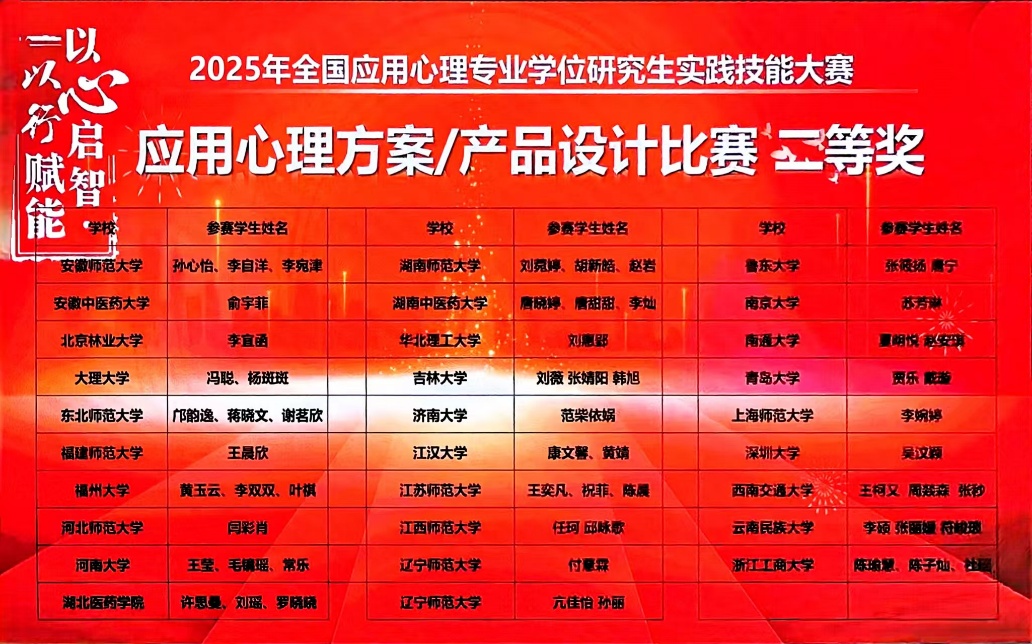 此次获奖,不仅是参赛学生团队创新与实践能力的体现,也是西南交通大学心理研究与咨询中心人才培养成果的一次集中展示。中心始终重视理论与实践相结合,鼓励学生在专业教师团队的指导下,关注社会现实需求,开展具有社会价值的应用研究与实践创新。该荣誉的取得,充分印证了中心在应用心理专业学位研究生培养方面的扎实工作与显著成效。