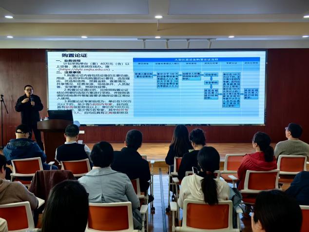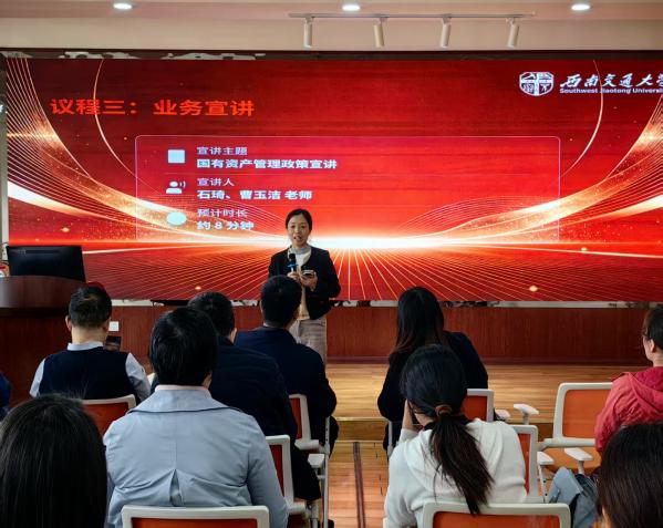 政策宣讲环节,石琦、曹玉洁老师围绕国有资产管理相关政策为老师们展开了详细的讲解,重点介绍了资产入账、购置论证、资产验收等日常管理办法,以及大型仪器设备的规范管理等规定。