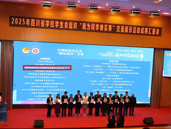 2025年12月14日至15日,由共青团四川省委、四川省学生联合会主办,西南石油大学承办的2025年四川省学校学生会组织“我为同学做实事”项目交流展示活动在西南石油大学(新都校区)落下帷幕。本次活动共吸引全省214所学校的381个项目参与。心理研究与咨询中心学生会项目《“心光计划”——全景式心理健康服务赋能成长》获评“百佳项目”(全省100项),同时荣获“精品项目”(全省30项)。