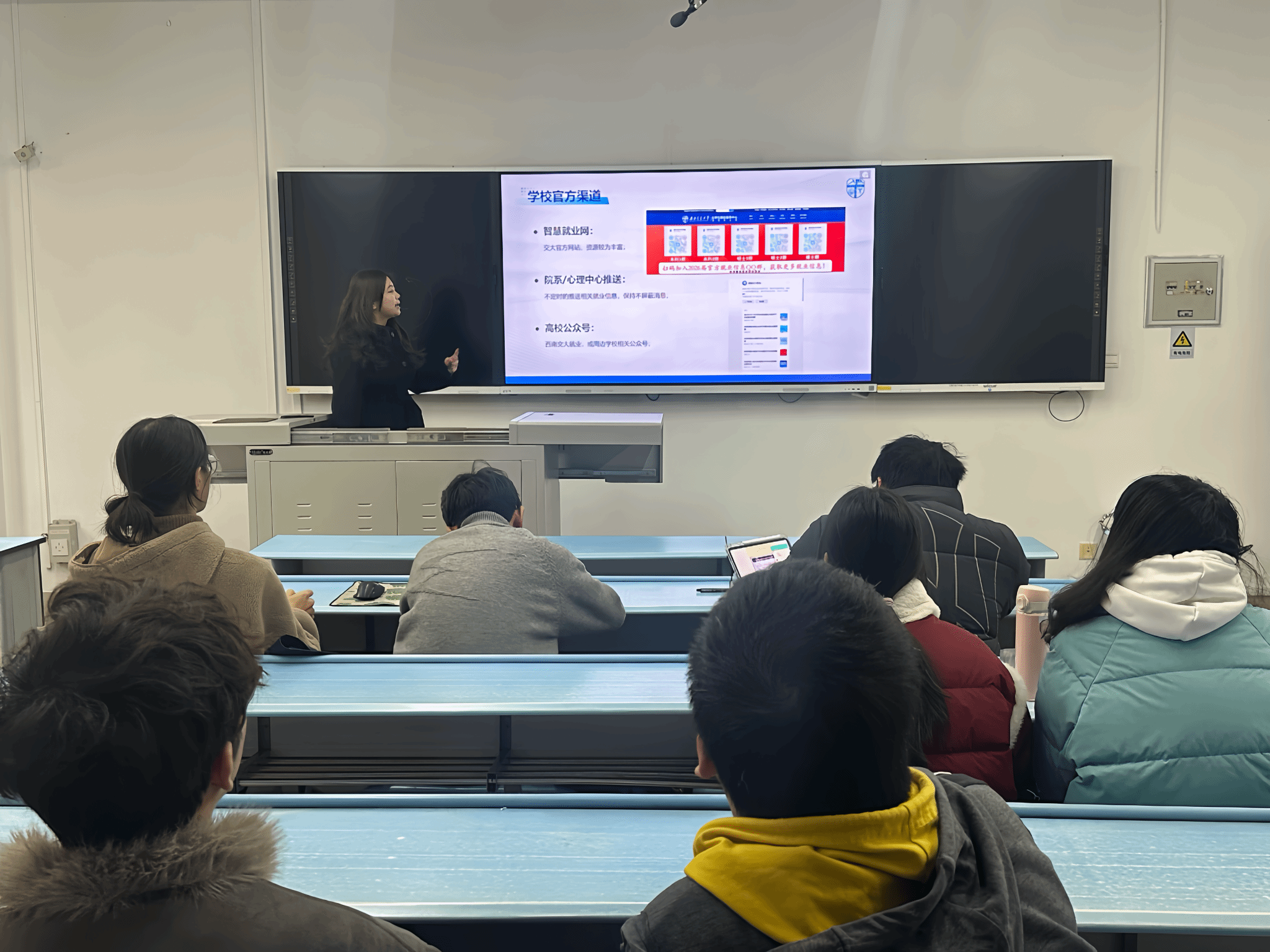 12月8日下午,心理研究与咨询中心成功举办了一场面向大三本科生的就业信息分享会。本次分享会特邀大四周玉娥学姐主讲,围绕“信息力·决策力·行动力”三大核心能力展开,系统讲解了如何高效获取、筛选与评估就业信息,助力学生从求职准备到行动落地的全过程提升。