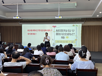 2025年教师节前夕,为了更好地关爱一线教师以及开展心理科普进校园活动,9月8日,应彭州市隆丰小学的邀请,成都市科普基地(西南交通大学心理研究与咨询中心)唐静老师与王草同学为隆丰小学的70余名老师开展了别开生面的教师心理课堂——“在正念中获得专注与喜悦”,现场互动温暖而有爱。