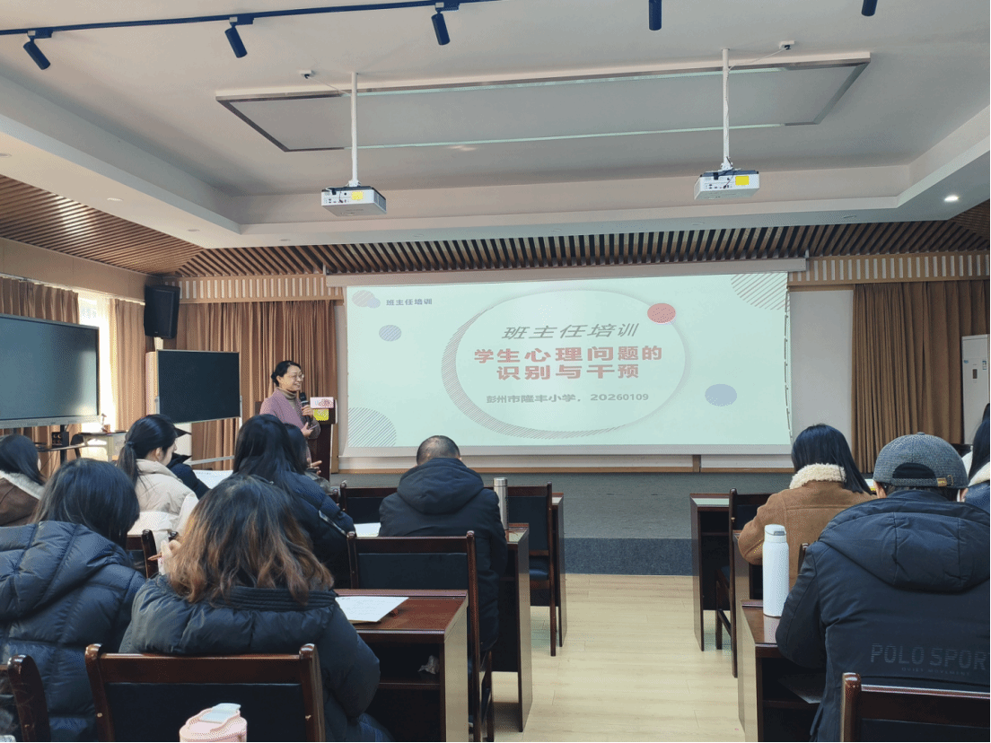 为深入贯彻落实国家关于心理健康教育的决策部署,精准破解班主任开展心理健康教育工作中的难点堵点,切实提升教师心理育人专业素养与实践能力,2026年1月9日,彭州市隆丰小学特邀成都市科普基地(交大心理普及基地)唐静、冯果两位老师,成功开展了题为“提升心理洞察能力 巧育童心护航成长”的班主任心理健康专题培训会。