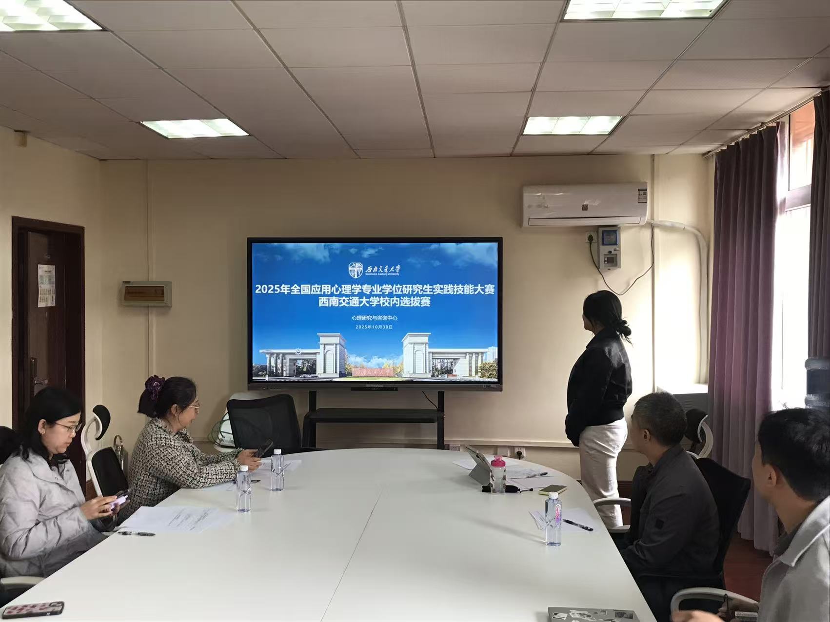 10月30日下午,2025年全国应用心理学专业学位研究生实践技能大赛西南交通大学校内选拔赛在犀浦校区X5424教室成功举办。本次比赛由校心理研究与咨询中心组织,旨在通过竞技交流提升专业学位研究生的实践能力,并选拔优秀代表参加全国大赛。